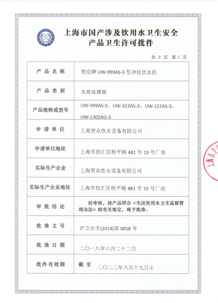 東莞市賀一飲水設備有限公司為賀眾牌飲水設備東莞授權總代理商,證號24019,負責上海賀眾飲水設備所產制的賀眾牌相關產品的銷售以及售后服務。